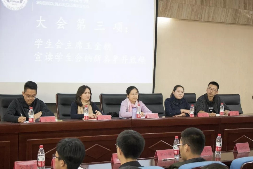 10月30日下午,美高梅博彩 第八届学生会成立大会在圣井校区敏行楼隆重举行。美高梅博彩 党委副书记张娟,团委书记孙磊,2015级辅导员王倩倩,2017级辅导员、学生会指导老师李智,2018级辅导员陈萌,第八届学生会主席团成员,学生会各部负责人,2018级学生会全体新成员出席会议。会议由院学生会副秘书长王昕琪主持。大会在庄严的国歌声中拉开序幕。之后,出席会议的各部部长做了简短的自我介绍。