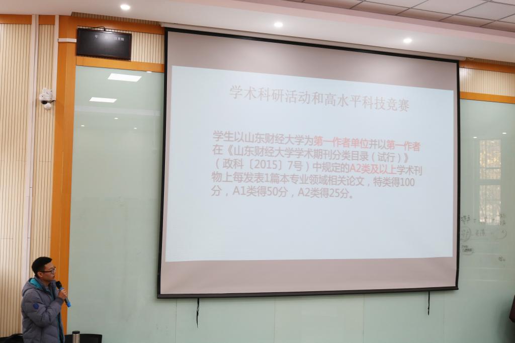 其次,杨牧以山东财经大学为例就考研时怎样科学搜索信息向大家分享了自己的经验。此外,她对考研的时间安排进行了详细介绍,并对考研所需书籍进行了推荐,并提出考研相关注意事项。同时,她还将政治、英语学习的重点进行了讲述,政治复习要尽早准备,注重阅读和写作才能有所突破。建议大家要对自己有清楚客观的认识,学会给自我制定计划,定期与研友和学长学姐交流自己的学习情况,坚持多练多做的思路和做法。最后她以“天道酬勤”四字来激励考研学子们努力奋斗,并祝愿学弟学妹都能获得自己满意的成绩。