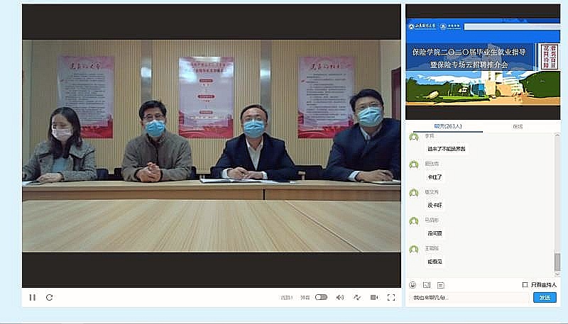 (通讯员 李智)春暖花开季,正当用人时。为进一步做好疫情期间就业指导与服务工作,积极应对疫情对2020届毕业生求职的影响,美高梅博彩官方网站 与中国保险行业协会、山东省保险行业协会、学校就业指导处通力合作,组织 “不一样的云”——山东财经大学2020届毕业生保险专场线上双选会,并于4月14日上午利用就业指导处直播平台,召开美高梅博彩 2020届毕业生就业指导暨保险专场云招聘推介会。校就业指导处副处长周广春、办公室主任何峰,国际交流与合作处宋晓,美高梅博彩 党委书记朱传武,副书记张娟,美高梅博彩 就业办孙磊,美高梅博彩 学工办王倩倩、李智以及美高梅博彩 全体毕业生参加了线上会议,会议由张娟主持。