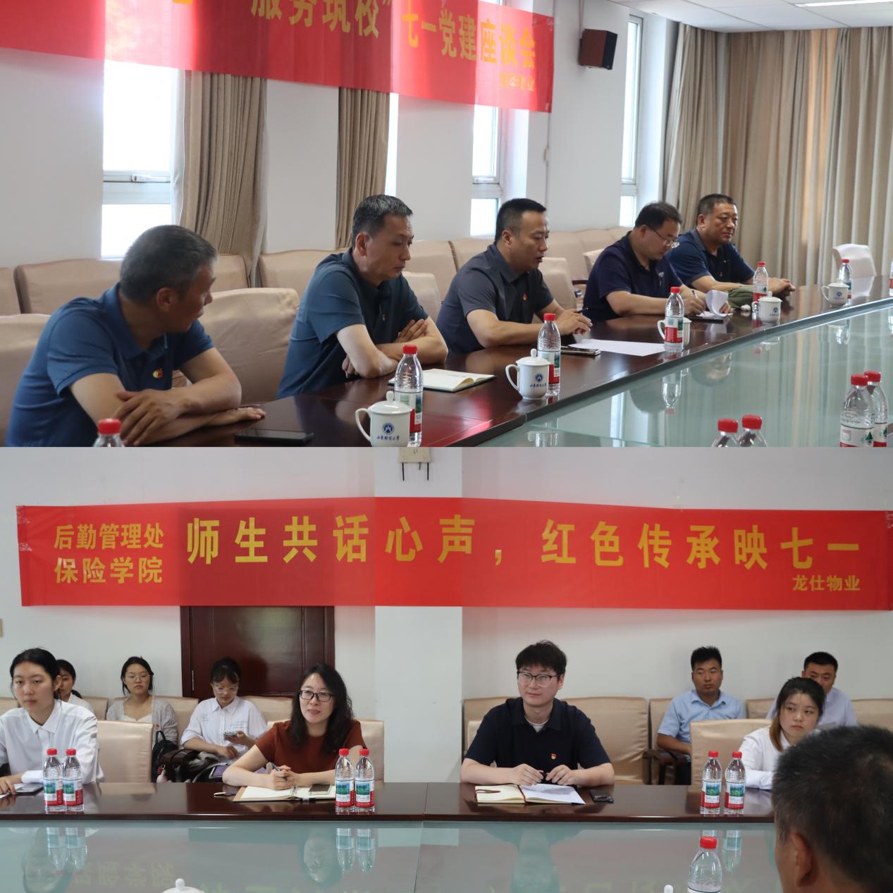 为了深化基层党组织建设,搭建师生沟通的坚实桥梁,助力学校高质量发展,在庆祝中国共产党成立104周年之际,6月18日上午,后勤管理处综合二支部与美高梅博彩 学生第二党支部党日活动共建座谈会在章丘校区顺利举办。后勤管理处副处长孙国栋、美高梅博彩 党委副书记王斐斐出席会议,活动由后勤管理处综合二支部书记贾涛、美高梅博彩 学生第二支部书记张腾共同主持。